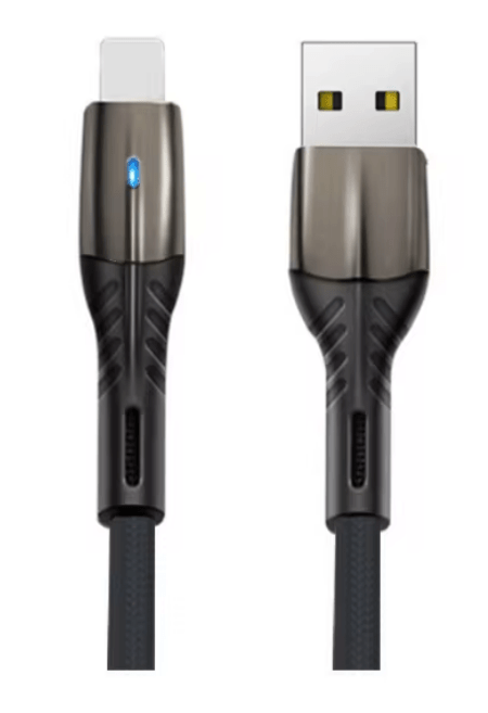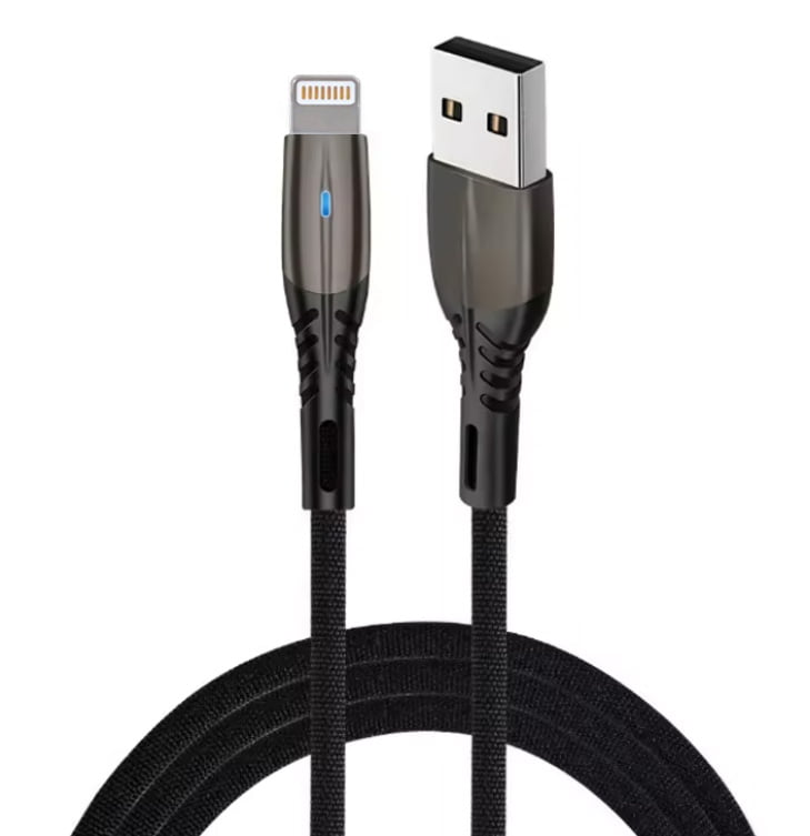 USB iPhone 5.1A Fast Charging Nylon Braided Cable – Metal Zinc Alloy with LED Light