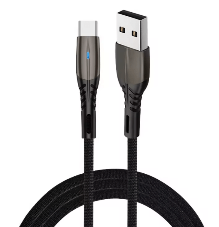 USB Type-C 5.1A Fast Charging Nylon Braided Cable – Metal Zinc Alloy with LED Light for Android Phones